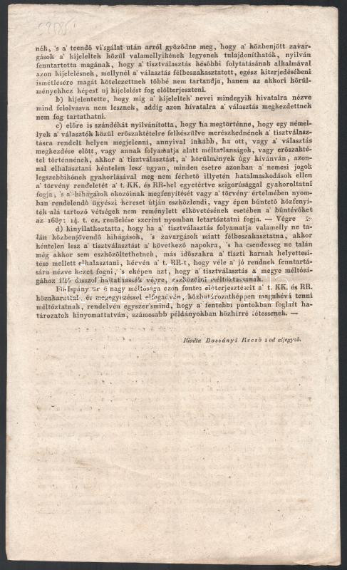 Beschreibung: 1847 Komárom vármegye közgyűlésének január 11. napján tartott ülésének kivonata 2 nyomtatott oldal