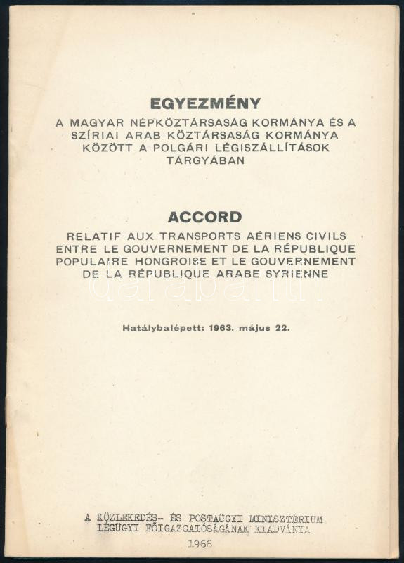 1966 Egyezmény a Magyar Népköztársaság kormánya és a SzÃriai Arab Közt... https://www.darabanth.com/de/475-Fernauktion/475.0/Kunst-Dokumente-andere-Sammelgebiete/Drucksachen~1000012/1966-Egyezmeny-a-Magyar-Nepkoztarsasag-kormanya-es-a-Sziriai-Arab-Koztarsasag-kormanya-k~II3223612