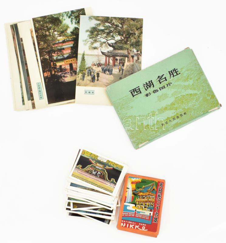 Beschreibung: cca 1970 Kínai turista kép sorozat + Nikko japán nemzeti park kép sorozat