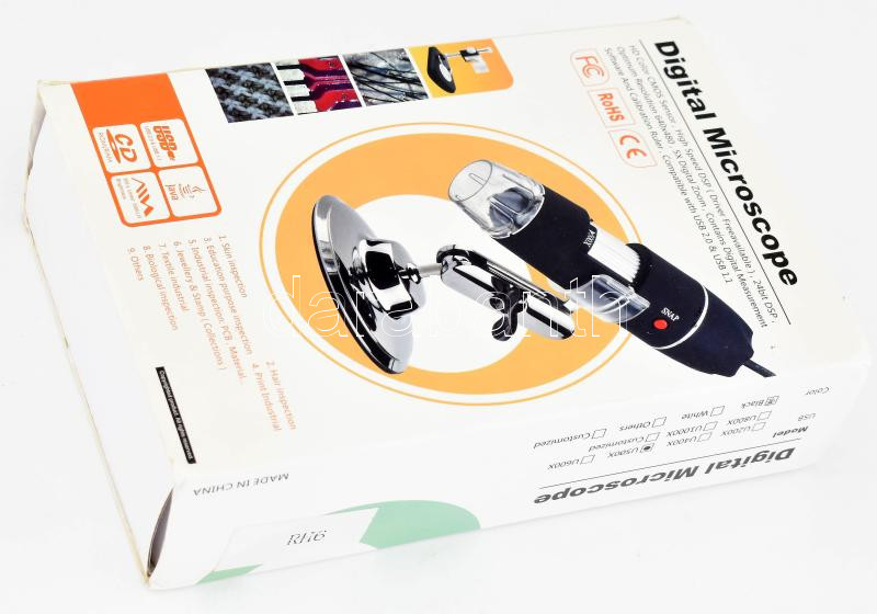Beschreibung: Digitális mikroszkóp, USB csatlakozás, eredeti dobozában, tartozékaival, nincs kipróbálva