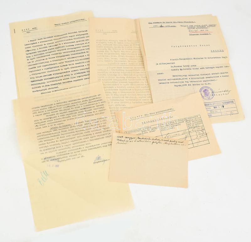 1939 2 db levél, kitüntetésre vonatkozó levelezés és belügyminisztériumi körlevél