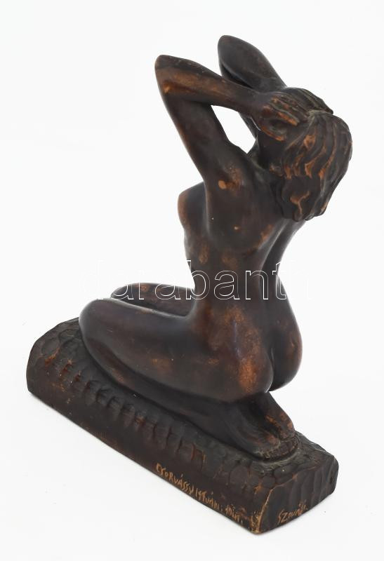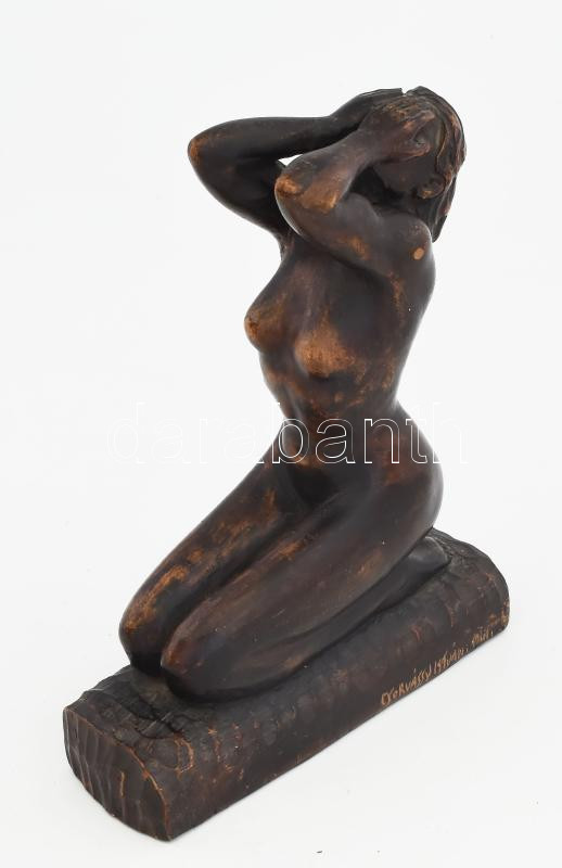Beschreibung: Csorvássy István (1912-1986): Térdelő akt. 1949. Jelzett, faragott és pácolt fa, m: 24 cm
