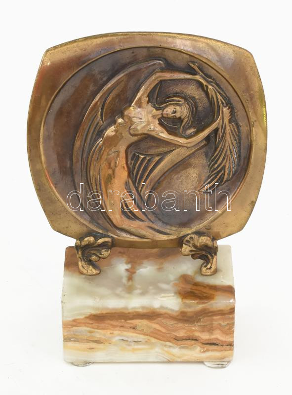 Szecessziós asztaldísz. Bronz, ónix talapzaton, címkével jelzett, m: 2... https://www.darabanth.com/de/475-Fernauktion/475.0/Kunst-Dokumente-andere-Sammelgebiete/Skulpturen-Statuetten-Plaketten~500011/Szecesszios-asztaldisz-Bronz-onix-talapzaton-cimkevel-jelzett-m-23-cm~II3222224