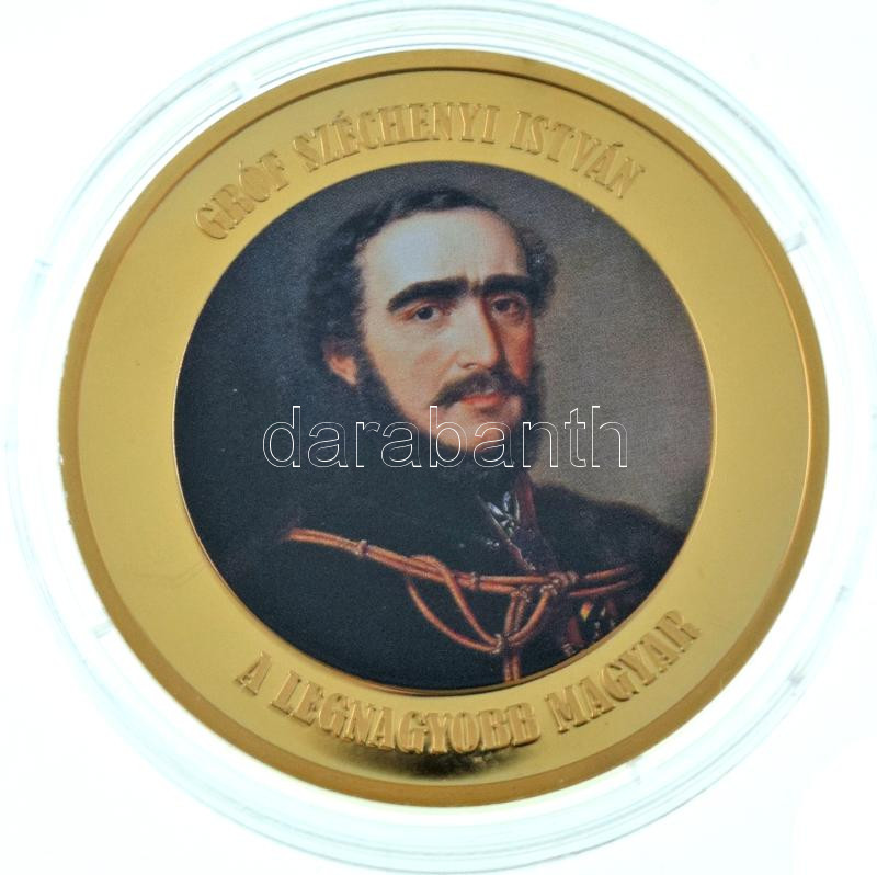 Beschreibung: 2021. "Gróf Széchenyi István, a legnagyobb magyar / Ha Isten velünk, ki ellenünk?" aranyozott fém multicolor emlékérem (38mm) T:PP