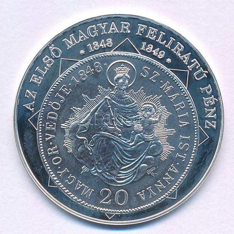 Beschreibung: DN "A magyar nemzet pénzérméi - Az első magyar feliratú pénz 1848-1849" Ag emlékérem (10,37g/0.999/35mm) T:PP
