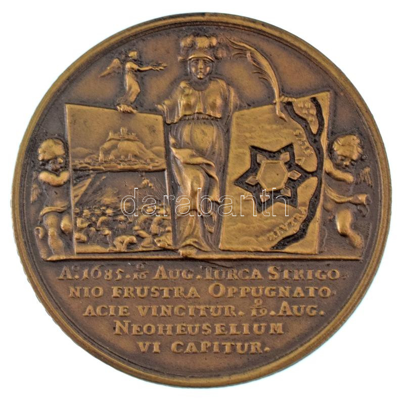 1685. "Érsekújvár és Esztergom visszavétele" bronz emlékérem, öntött másolat (59mm) T:XF Hungary 1685. "The retake of Érsekújvár and Esztergom" cast bronze commemorative medal copy (59mm) C:XF