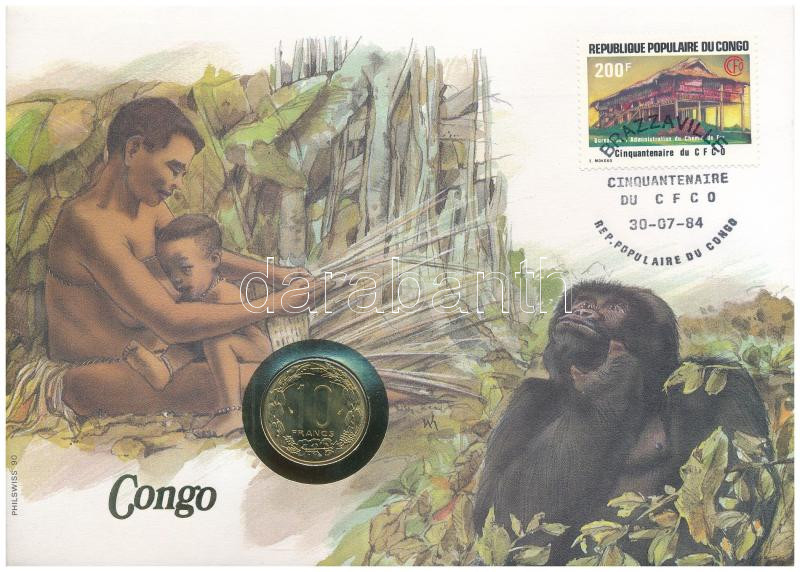Kongó felbélyegzett borítékban, bélyegzéssel, benne Nyugat Afrikai Államok 1983. 10Fr, német nyelvű leírással T:UNC Congo in envelope with stamp and cancellation, in it West African States 1983. 10 Francs with German language description C:UNC