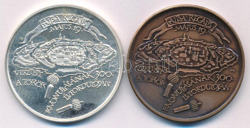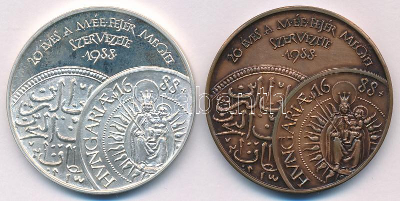 Fritz Mihály (1947-) 1988. "20 éves a MÉE Fejér megyei Szervezete 1988 / Veretett a törökök kivonulásának 300. évfordulóján" kétoldalas Ag, peremén "SZG" jelzéssel és bronz emlékérem pár (35,40g/0.835/42,5mm) T:UNC,AU (eredetileg PP) patina