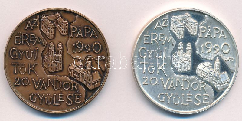 Lantos Györgyi (1953-) 1990. "MÉE Pápa / Éremgyűjtők 20. Vándorgyűlése" Ag és bronz emlékérem pár (36,31g/0.835/42,5mm) T:UNC,AU (eredetileg PP) Adamo PP3