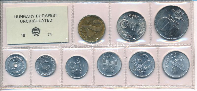 1974. 2f-10Ft (9xklf) érmés forgalmi sor fóliatokban T:UNC Adamo FO7 https://www.darabanth.com/de/475-Fernauktion/475.0/Numismatik/Ungarische-Kursmunzsatze~2000011/1974-2f-10Ft-9xklf-ermes-forgalmi-sor-foliatokban-TUNC-Adamo-FO7~II3207085