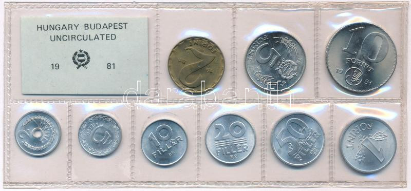 1981. 2f-10Ft (9xklf) érmés forgalmi sor fóliatokban T:UNC Adamo FO14 https://www.darabanth.com/de/475-Fernauktion/475.0/Numismatik/Ungarische-Kursmunzsatze~2000011/1981-2f-10Ft-9xklf-ermes-forgalmi-sor-foliatokban-TUNC-Adamo-FO14~II3217999