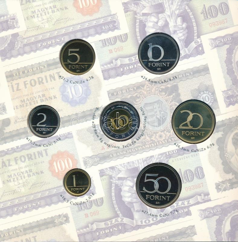 2006. 1Ft-100Ft (7xklf) forgalmi sor szettben + 1946. 1Ft Ag "Hatvanéves a Forint" utánveret proof kivitelben T:PP patina, a külső dísztok hiányzik