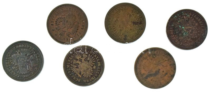 Beschreibung: 1851. 1kr Cu (6db, ebből 4db A, 2db B verdejellel) T:XF,VF patina, egyik lakkozott