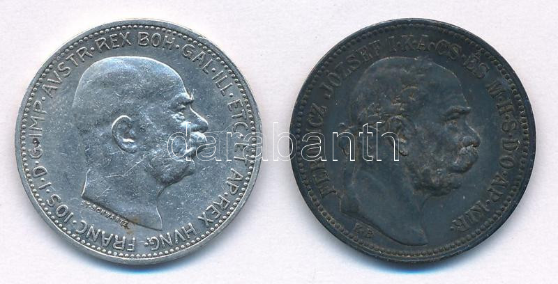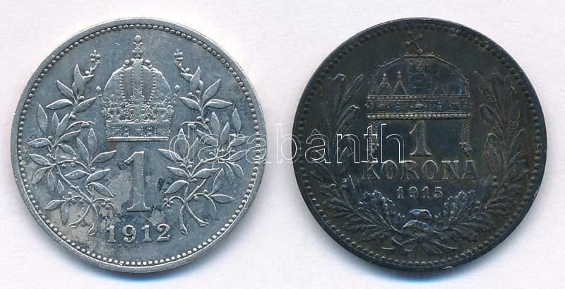 Hungary 1915KB 1 Korona Ag "Franz Joseph" + Austria 1912. 1 Corona Ag "Franz Joseph" C:XF patina, small edge error on one