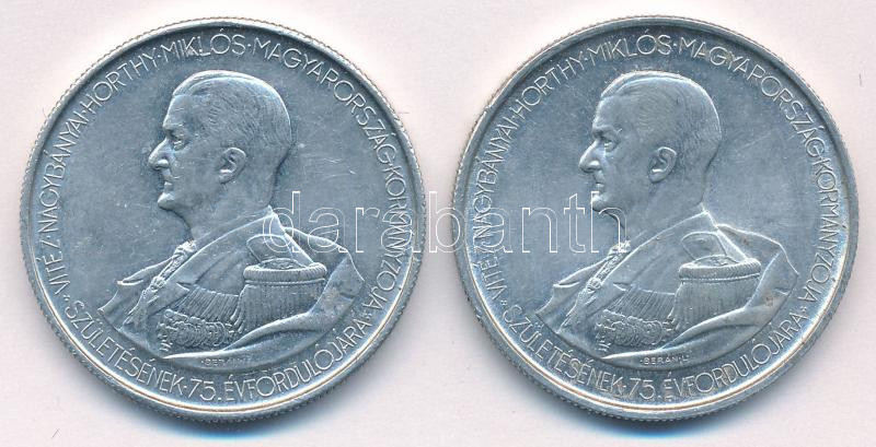 1943. 5P Al "Horthy Miklós születésének 75. évfordulójára" (... https://www.darabanth.com/de/475-Fernauktion/475.0/Numismatik/Ungarische-Munzen-und-Munzen-mit-ungarischem-Munzzeichen~2000010/1943-5P-Al-Horthy-Miklos-szuletesenek-75-evfordulojara-2x-TAU-Adamo-P83~II3223604