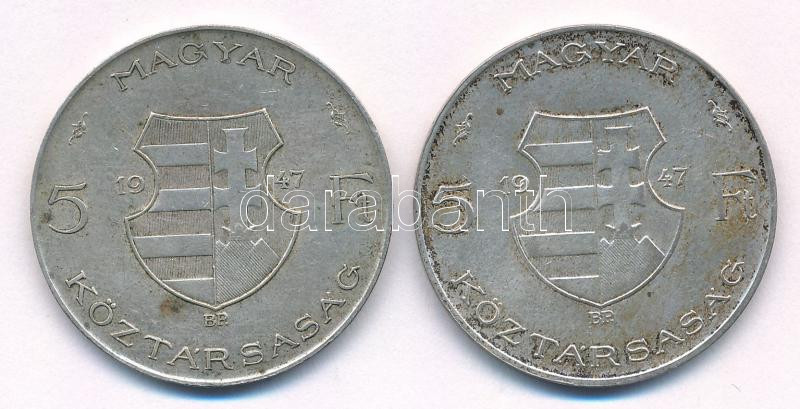 Beschreibung: 1947. 5Ft Ag "Kossuth" (2x) T:VF patina Adamo F8.1
