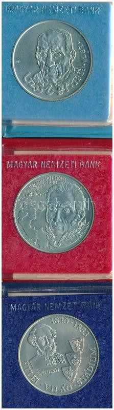 Beschreibung: 1983. 100Ft alpakka "Simon Bolivar" + 1983. 100Ft alpakka "Széchenyi István" + 1983. 100Ft alpakka "Czóbel Béla" mindhárom eredeti műbőr tokban, tanúsítvánnyal T:BU