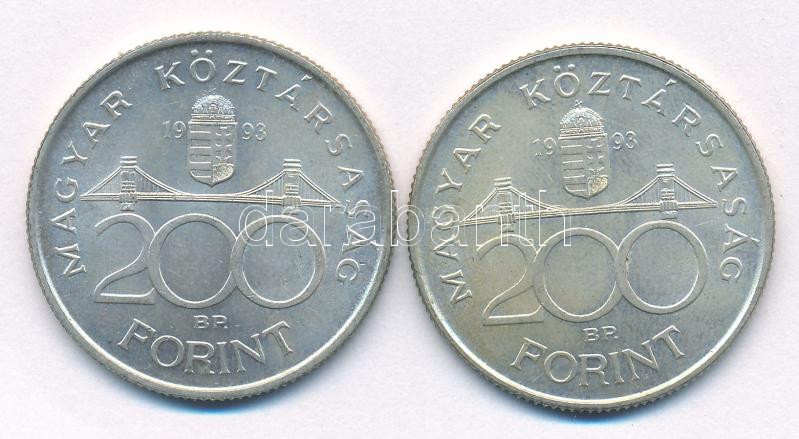 Beschreibung: 1993. 200Ft Ag "MNB" (2x) T:AU patina