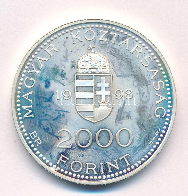 Beschreibung: 1998. 2000Ft Ag "Integráció az EU-ba - EURO II" T:AU (eredetileg PP) folt Adamo EM153