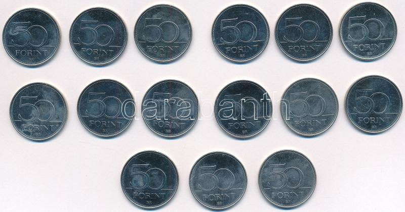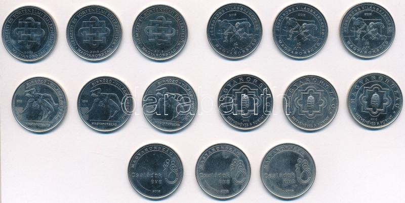 2015. 50Ft Cu-Ni "Nemzeti Emlékhelyek" (3x) + 2016. 50Ft Cu-Ni "Hetvenéves a forint" (3x) + 2018. 50Ft Cu-Ni "Jégkorong Világbajnokság" (3x) + 50Ft Cu-Ni "Családok éve" (3x) + 50Ft Cu-Ni "Birkózó Világbajnokság" (3x) T:AU,XF Adamo FOEM9, FOEM12, FOEM13, FOEM14