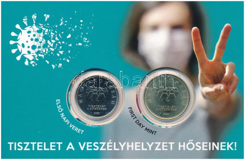 Beschreibung: 2020. 10Ft Cu-Ni + 20Ft Cu-Ni-Zn "Tisztelet a hősöknek" elsőnapi veret, sorszámozott "03350" bliszterben T:UNC