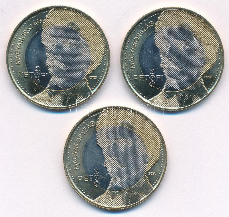 2023. 200Ft bicolor "Petőfi 200" (3x) T:UNC,AU https://www.darabanth.com/de/475-Fernauktion/475.0/Numismatik/Ungarische-Munzen-und-Munzen-mit-ungarischem-Munzzeichen~2000010/2023-200Ft-bicolor-Petofi-200-3x-TUNC-AU~II3231731