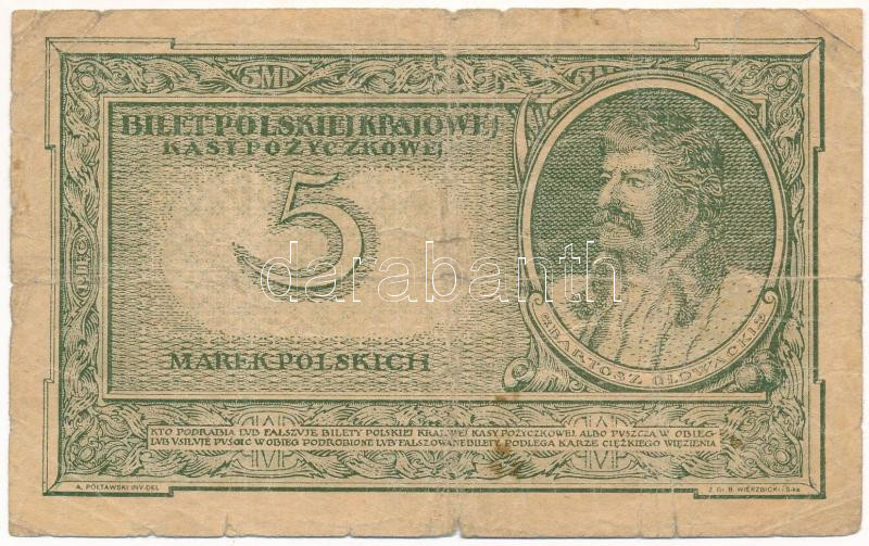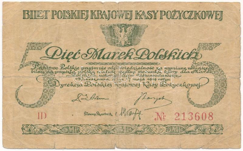 Lengyelország 1919. 5M T:VG Poland 1919. 5 Marek C:VG Krause P#20 https://www.darabanth.com/de/475-Fernauktion/475.0/Numismatik/Weltweit-Banknoten~2000016/Lengyelorszag-1919-5M-TVG-Poland-1919-5-Marek-CVG-Krause-P2320~II3203141