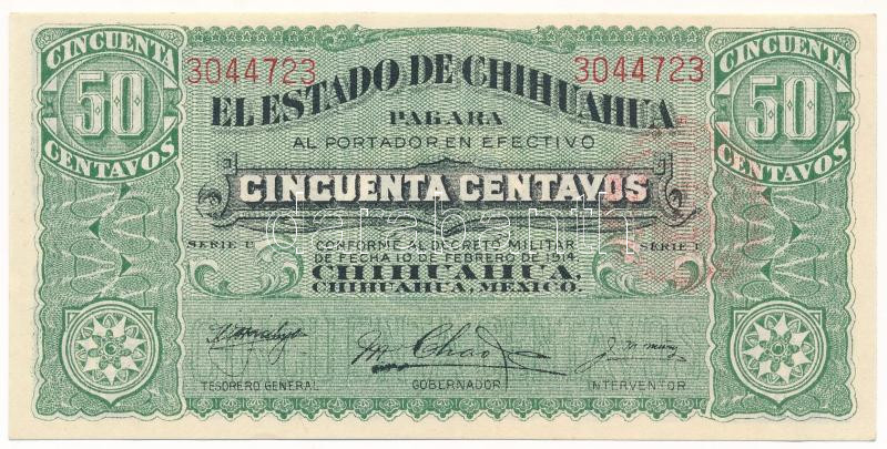 Mexikó / Forradalom / Chihuahua 1914. 50c hátoldalán piros felülbélyegzéssel T:XF az egyik szélén halvány hajtás