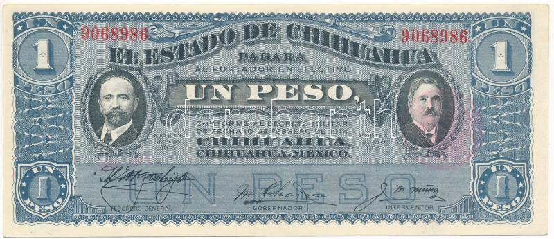 Mexico / Revolution / Chihuahua 1915. 1 Peso with red circular overprint and date on back C:AU