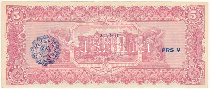Mexikó / Forradalom / Chihuahua 1915. 5P "M" sorozat, hátoldalán kék felülbélyegzéssel T:AU