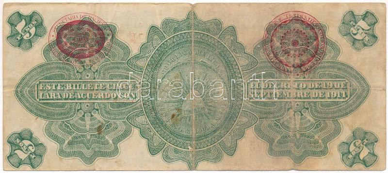 Mexikó / Gobiernói Ideiglenes Kormány 1914. 5P piros "REVALIDADO" felülbélyegzéssel T:F,VG folt, tűlyuk