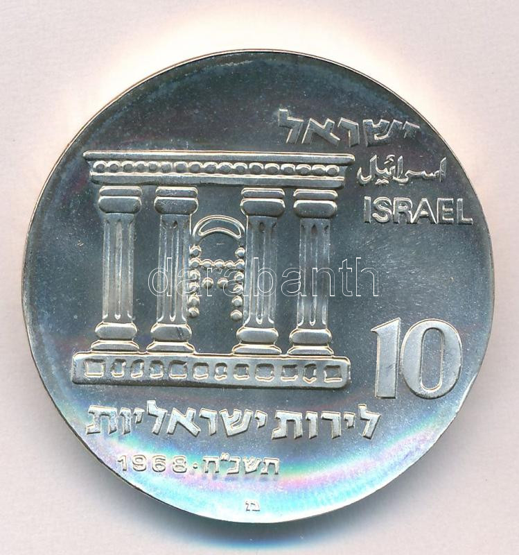 Israel 1968. 10 Lirot Ag "20th Anniversary of Independence - Jerusalem" C:UNC,AU