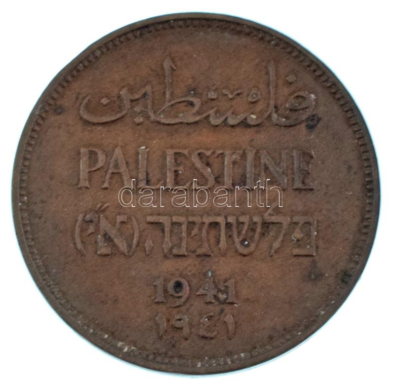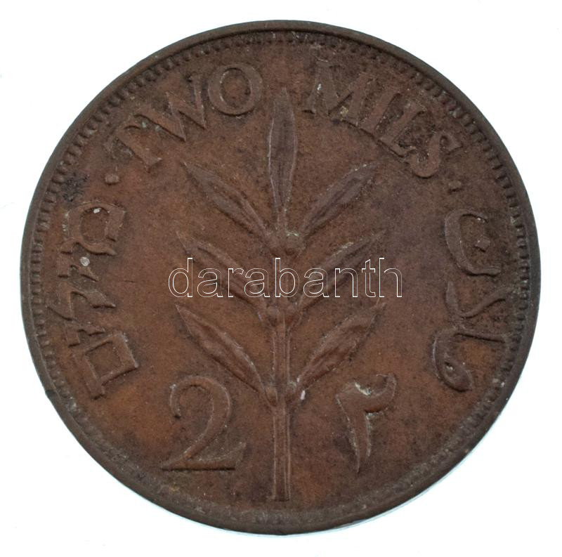 Palesztina 1941. 2m bronz T:AU patina, kis ph Palestine 1941. 2 Mils bronze C:AU patina, small edge error Krause KM#2