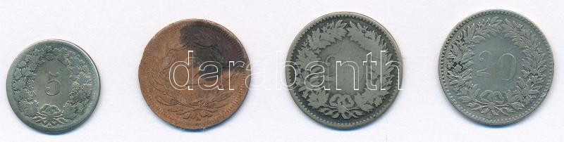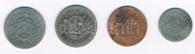 Beschreibung: Svájc 1850A 2r bronz + 1850BB 5r billon + 1850BB 20r billon (2x) T:F patina, 2r anyaghiánnyal