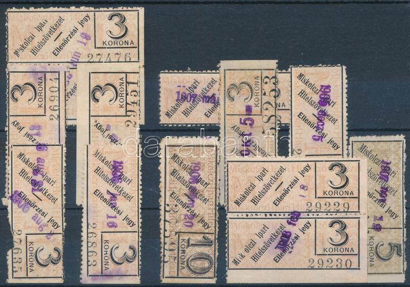 1906 Miskolci Ipari Hitelszövetkezet ellenőrzési jegy 3,5,10K össz: 13... https://www.darabanth.com/de/475-Fernauktion/475.0/Philatelie-und-Postgeschichte-Ungarn/Paraphilatelie~500019/1906-Miskolci-Ipari-Hitelszovetkezet-ellenorzesi-jegy-3-5-10K-ossz-13-db~II3196395