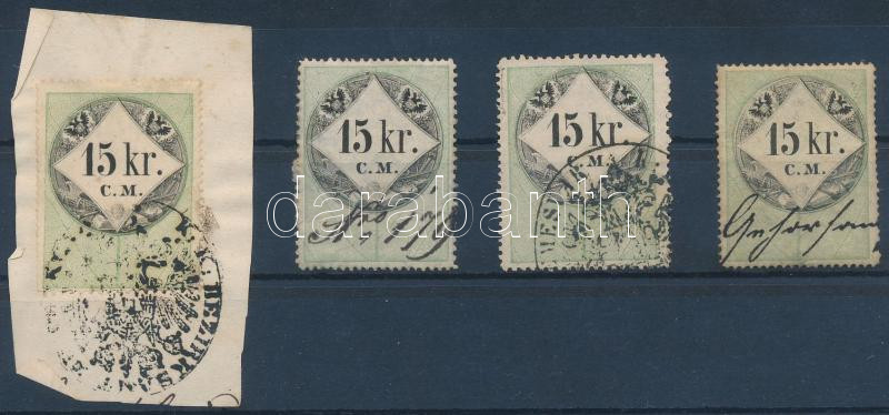 Beschreibung: 4 db régi okmánybélyeg