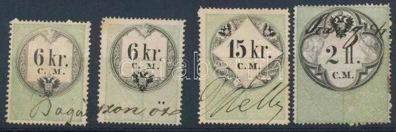 Beschreibung: 4 db régi okmánybélyeg