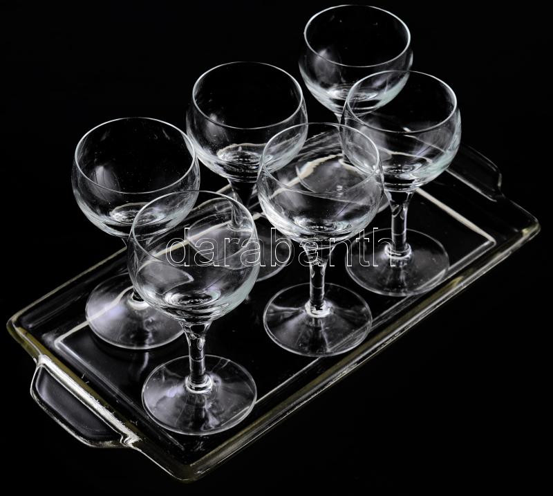 Beschreibung: Kristály likőrös pohár készlet tálcán, 6 darab, m: 11,5 cm