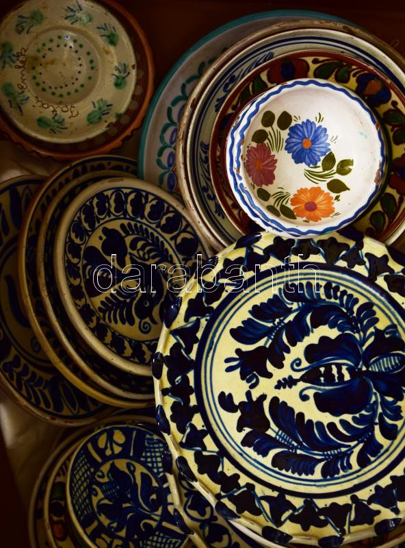 34 darab retro, régi és antik kerámia tányér, zömmel erdélyi és alföldi, közte jelzett hódmezővásárhelyi és antik darabbal is, klf méretben, állapotban.