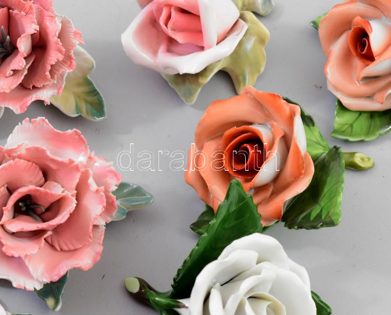Beschreibung: 4 darab Herendi és 5 darab Ens porcelán rózsa, jelzett, kis pattogzásokkal, 1-1 sérüléssel.