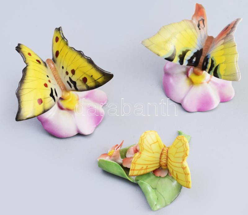 Beschreibung: Herendi + 2 darab Drasche porcelán pillangó, jelzett, sérüléssel, h: 6 cm alatt
