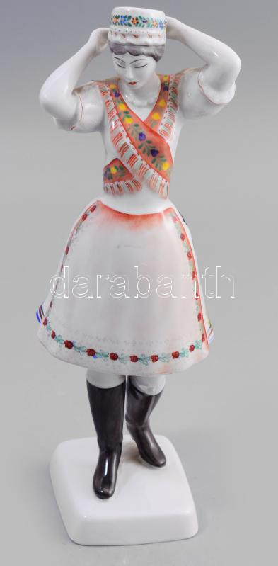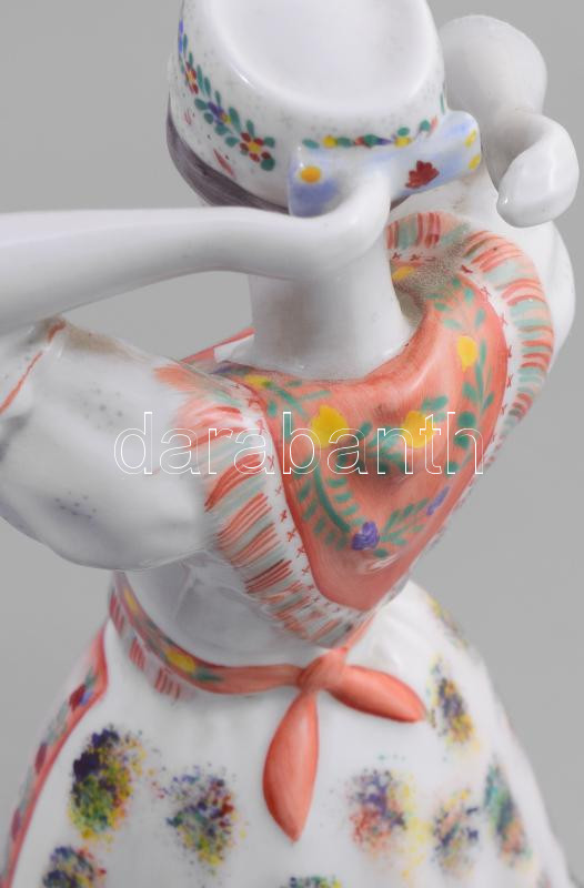 Beschreibung: Hollóházi porcelán népviseletes lány, kézzel festett, jelzett, hibátlan, m: 31 cm