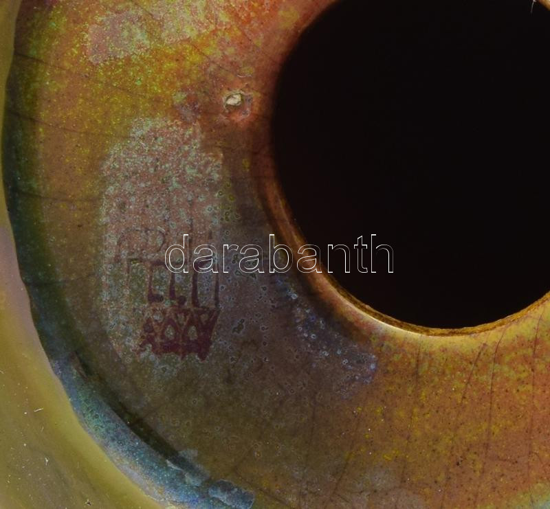 Beschreibung: Zsolnay kisplasztika - pécsi Zsolnay-kút. Terv.: Sinkó András. Savmaratott felületű, többféle eozin mázakkal fedett finomfajansz. Jelzett, hibátlan, m: 14 cm