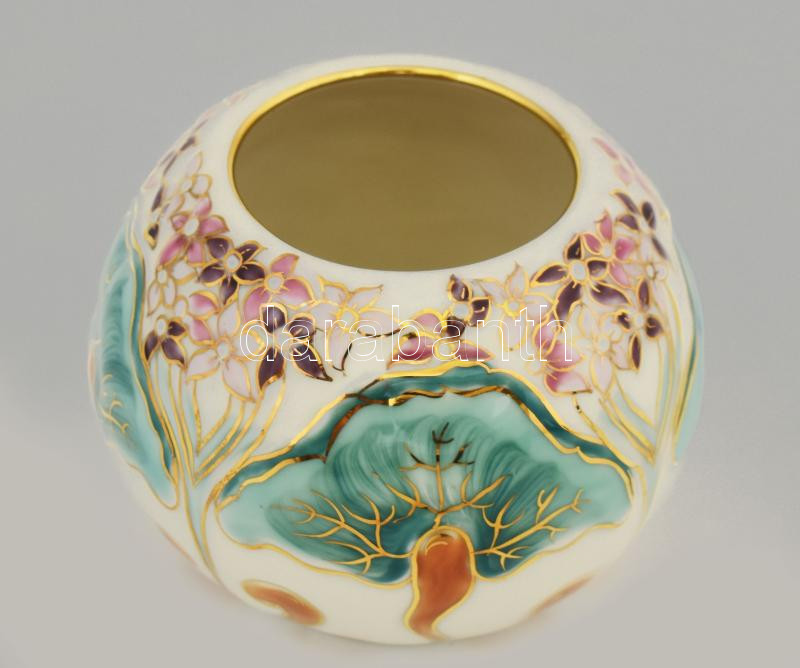 Zsolnay szecessziós mintás váza. Kézzel festett, jelzett, hibátlan d: ... https://www.darabanth.com/de/475-Fernauktion/475.0/Porzellan-Keramik-Glass/Porzellan~500007/Zsolnay-szecesszios-mintas-vaza-Kezzel-festett-jelzett-hibatlan-d-9-cm-m-8-cm-eredeti-do~II3222624