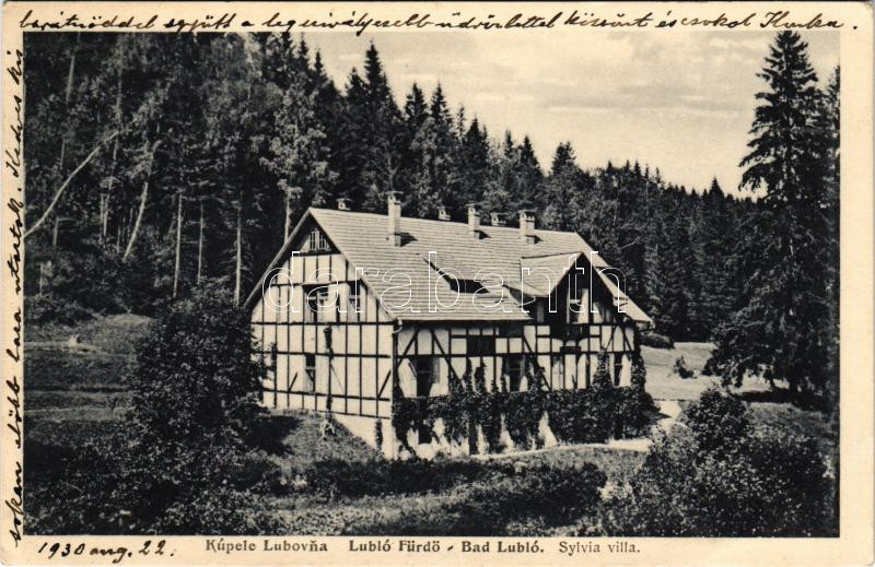 1930 Lublófürdő, Kúpele Lubovna; Sylvia villa / villa https://www.darabanth.com/de/476-Fernauktion/476.0/Ansichtskarten/Slowakei~2000007/1930-Lublofurdo-Kupele-Lubovna-Sylvia-villa-villa~II3238833
