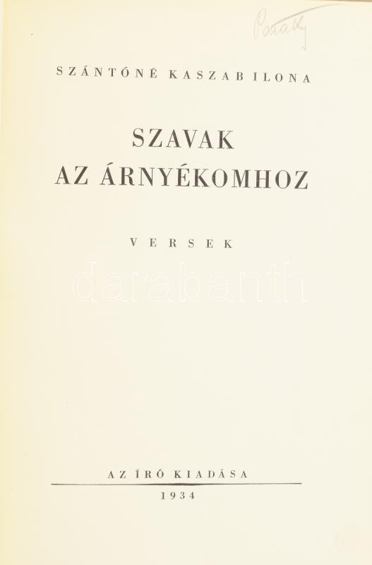 Füst Milán/Szántóné Kaszab Ilona: Szavak az árnyékomhoz (Füst Milán által aláírt meghívókártyával)
