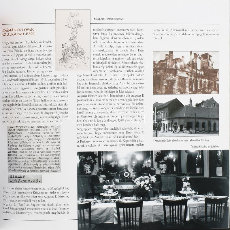 Auguszt Arató Auguszta - Auguszt Olga: Auguszt Cukrászda. Egy cukrászdinasztia története 1870-2006. Bp., 2007, Grafit Public. Gazdag képanyaggal illusztrálva. Kiadói kartonált papírkötés, kiadói papír védőborítóban. A tételhez tartozik egy újságcikk is.