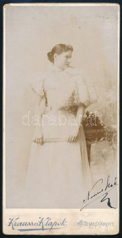 cca 1890 Elegáns fiatal lány egészalakos portréja, kabinetfotó Krauss ... https://www.darabanth.com/de/476-Fernauktion/476.0/Fotografie/Foto~1500004/cca-1890-Elegans-fiatal-lany-egeszalakos-portreja-kabinetfoto-Krauss-es-Klapok-temesvari~II3239840