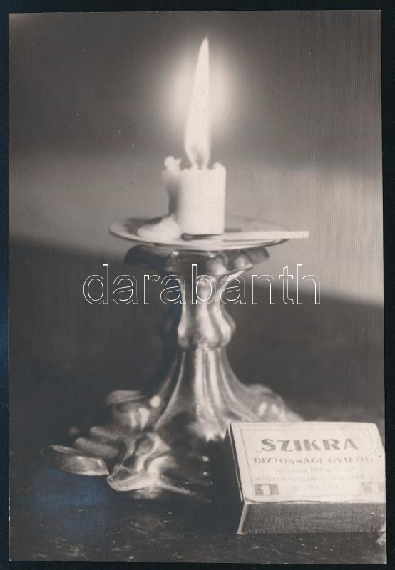 Beschreibung: cca 1920-1930 Szikra biztonsági gyújtó, reklámfotó, jelzés nélkül, 17×11,5 cm