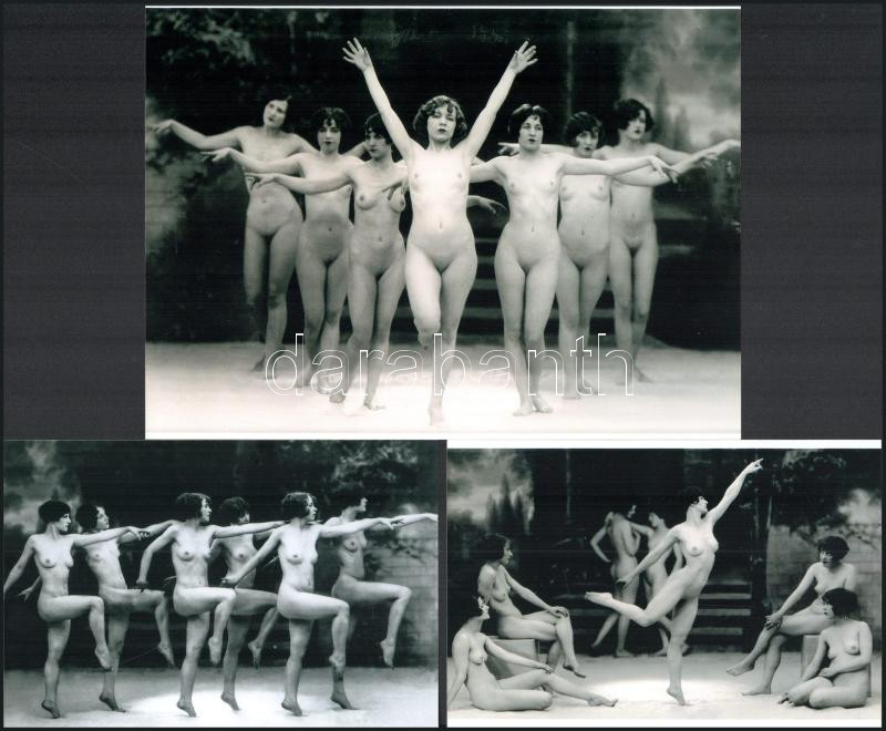 Beschreibung: cca 1920 Mozgásművészeti kompozíciók, szolidan erotikus felvételek, 3 db modern nagyítás, jelzés nélkül, 15x21 cm és 10x15 cm